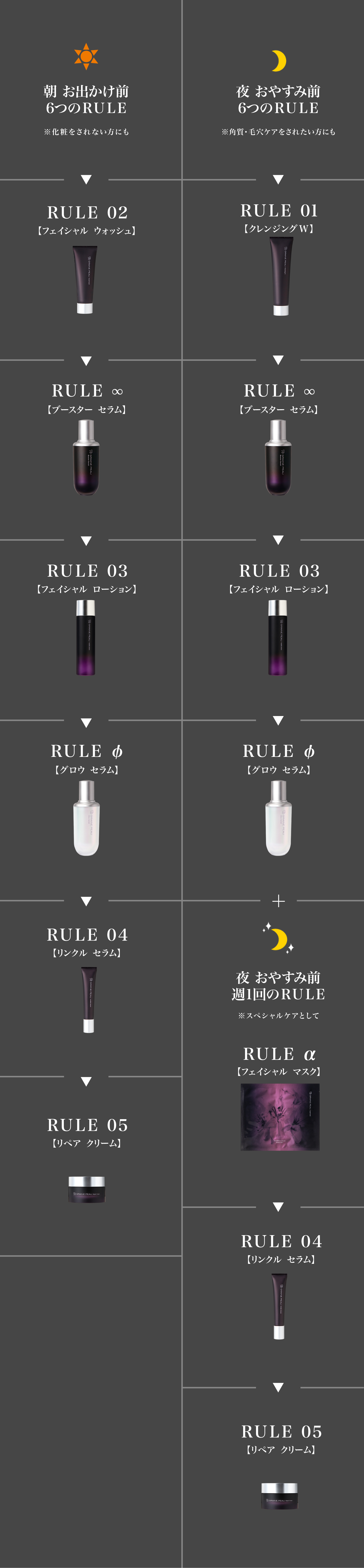 「RULE-0」は、ベネシードが考えるスキンケアの基本的な「ルール(使用順番と使用方法、使用量など)」を守ることによって、加齢や肌環境による肌悩みを「ゼロ」にすること。それがグレーヌ・ポーの「RULE-0」です。