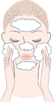 あらかじめ手とお顔をぬらしてから、適量(2~4cm)を泡立てネットまたは手のひらに取り、少量の水またはぬるま湯を加えながら、よく泡立てます。泡でお顔を包み込むように洗い、その後、洗い残しがないように十分に洗い流してください。