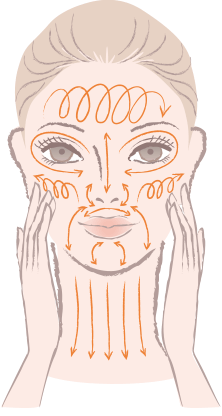 ※お顔を両手で覆うようにして手のひらでやさしく押さえ、全体にゆっくりとなじませる方法です。